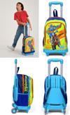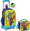 Coral High Sarı Mavi Motorsiklet Çekçek Okul Çantası ve Beslenme Seti - Işıklı Tekerlekler - Erkek Çocuk