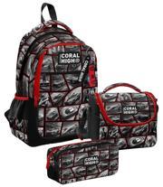 Coral High Kız Çocukları için Üç Bölmeli Okul Çantası Seti (SETYGN14429A) - (Siyah Kırmızı Araba)