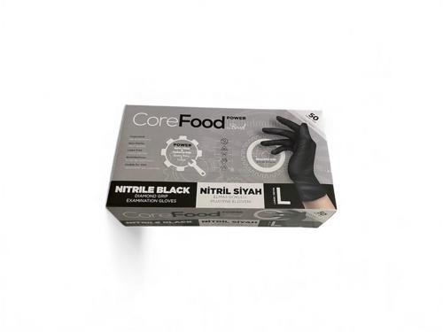 COREFOOD SİYAH NİTRİL ELDİVEN L BEDEN ELMAS DOKULU
