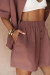 Regular fit bermuda şort, elastik bel ve düğme detaylı.Önü düğme tasarım.
