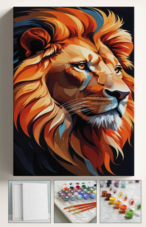 Sayılarla Boyama Çerçeveli Hobi Seti Numaralı Tuval Fırça Boya Dahil Kasnaklı ASLAN 40X50 Cm