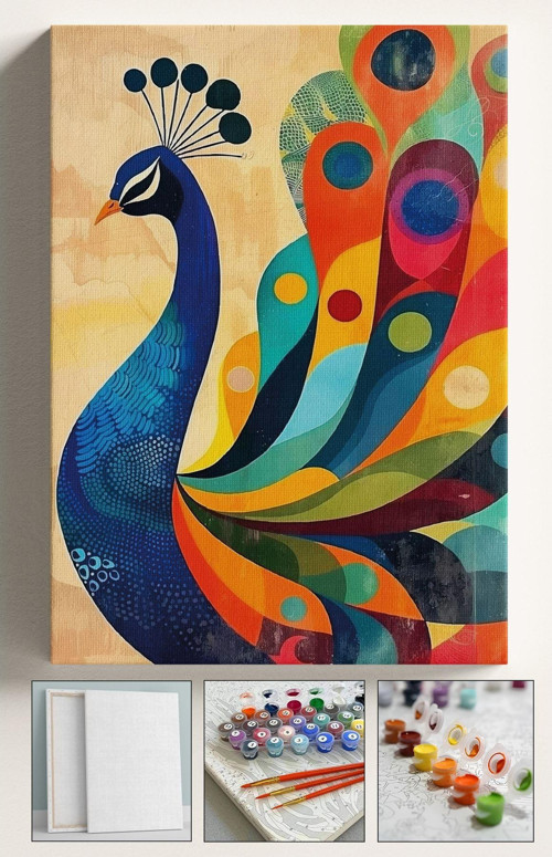 Corvo Sayılarla Boyama Çerçeveli Hobi Seti Numaralı Tuval Fırça Boya Tavus Kuşu Dahil Kasnaklı 40X50 Cm