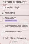 İçindekiler / Ingredients: Aqua, Niacinamide, Retinol, Polysorbate 20, Sodium Hyaluronate, Acetyl Hexapeptide-8, Panthenol, Hyaluronic Acid, Ethylhexylglycerin, Phenoxyethanol, Xanthan Gum, Allantoin, Disodium Edta