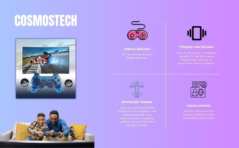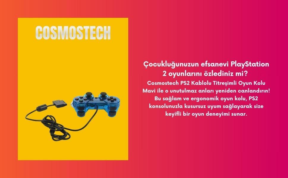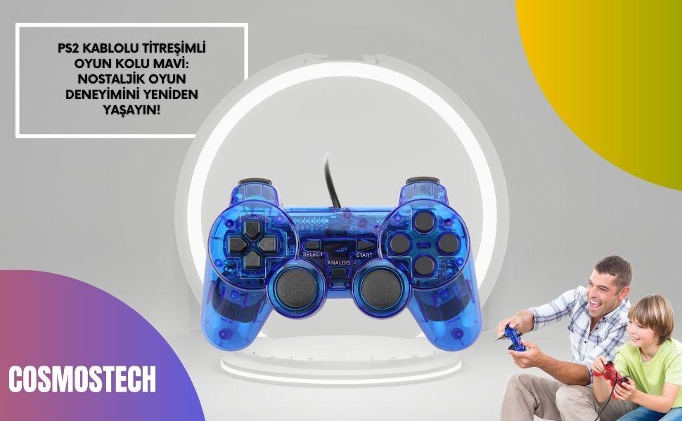 Cosmostech PS2 Kablolu Titreşimli Oyun Kolu Mavi ile Geçmişe Yolculuk Başlıyor!