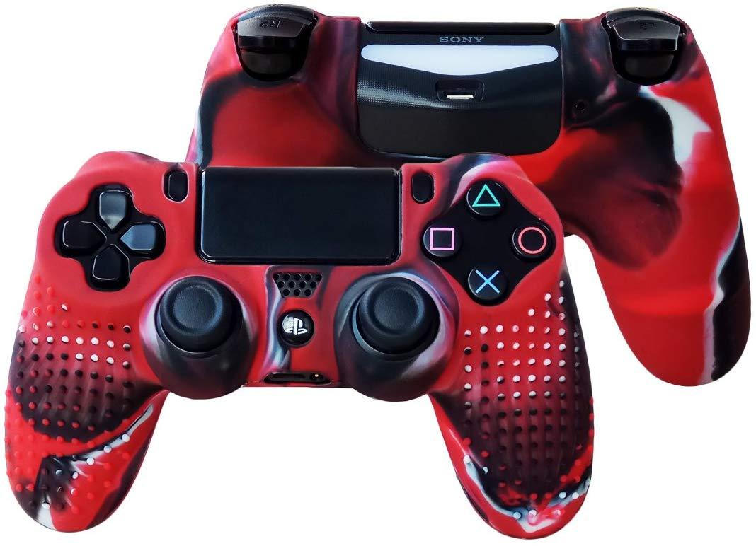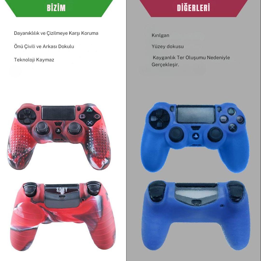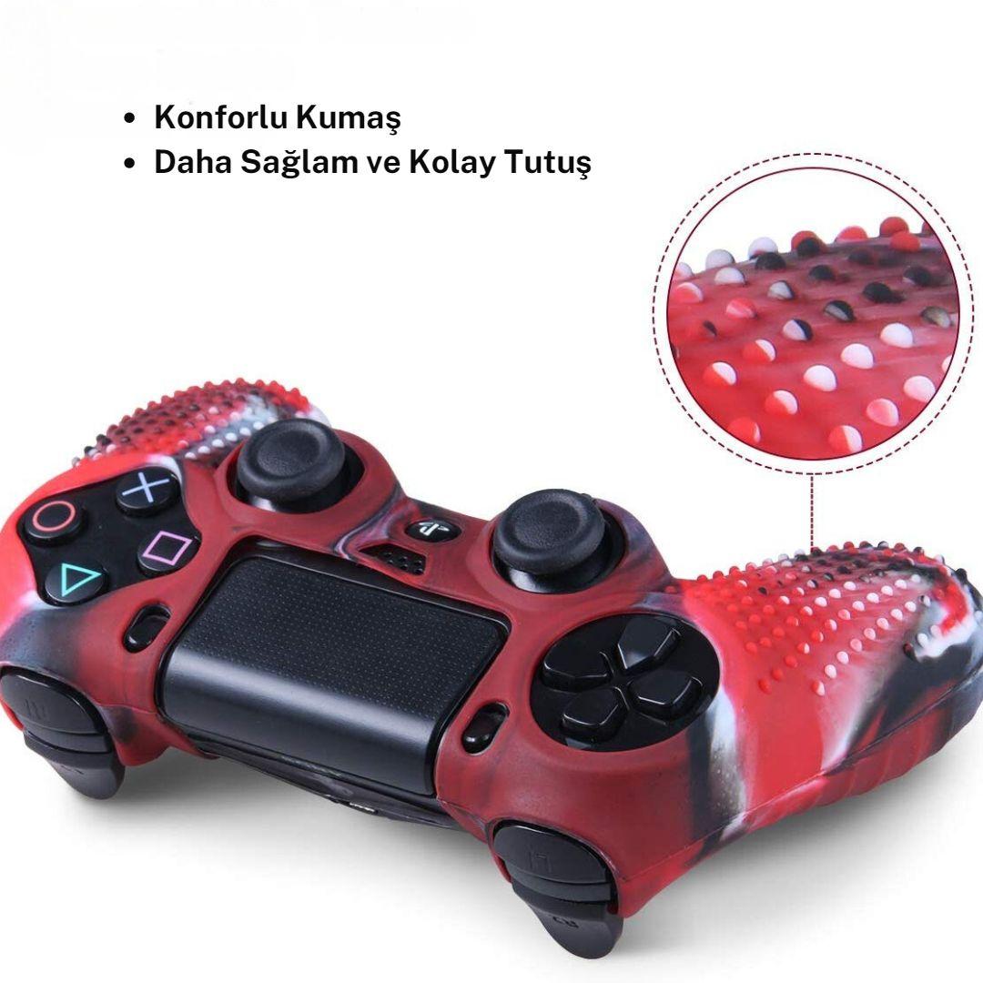 Cosmostech PS4 Controller Joystick Oyun Kolu Gamepad Uyumlu - Silikon Koruyucu Cover Kırmızı Kamuflaj