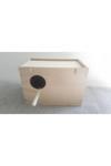 EV TİPİ KAFESLER İÇİN TASARLANMIŞ EV TİPİ MUHABBET KUŞU YUVALIĞI MUHABBET KUŞLARI İÇİN KAFES TELİNE ASILMAYA UYGUN KANCALARI VE TÜNEĞİ BULUNAN AHŞAP YUVALIK.
