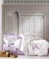 Cotton Box 3D Nakışlı Saten Çift Kişilik Nevresim Takımı Mita Lila
