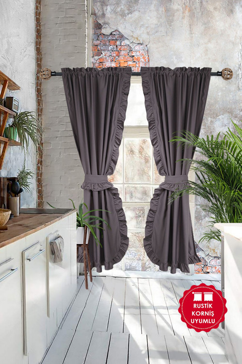 Cotton Maison Poli Perde Çift Kanat Dikey Fırfırlı