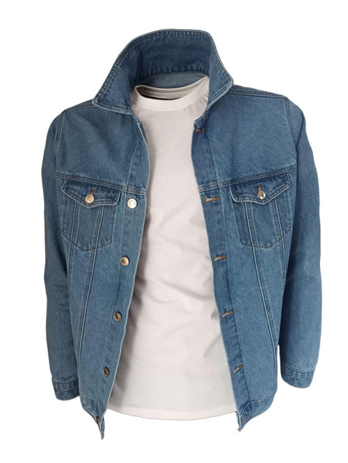 Standart kalıp tasarımıyla her vücut tipine uyum sağlayan denim ceket, günlük kullanım için idealdir.