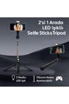 CoverZone 2İn1 Selfie Stick Tripod 170Cm Uzatılabilir, Bluetooth Kumanda, 3 Modlu Led Işık, Type-C | Np-01S