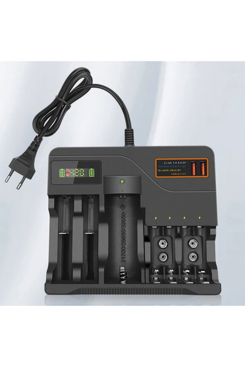 CoverZone 7 Yuvalı Akıllı Pil Şarj Cihazı – Lcd Ekranlı, 18650/Aa/Aaa/9V Hızlı Şarj Destekli | Al-7988A
