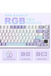 CoverZone Ajazz Ak820 Pro Mekanik Rgb Oyun Klavyesi,3 Modlu Tft Renkli Ekran Cnc Düğmeli 81 Tuş Mor Beyaz