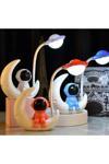 Ayda Oturan Astronot Tasarımlı Masa Ve Gece Lambası Dekoratif Hediyelik Çalışma Ve Çocuk Odası