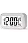 Coverzone Dijital Alarmlı Saat, 12/24 Dönüştürme Gece Görüşlü Masa Saati Led Ekran Pilli Çalar Saat Beyaz