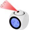 CoverZone Duvara Yansıtmalı Projeksiyon Dijital Konuşan Usb Şarjlı Pilli Alarmlı Başucu Çalar Saati Beyaz