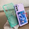 CoverZone Galaxy A22 Kılıf Kart Gözlü Antishock Köşeli Kamera Korumalı Cardcase Silikon Antrasit Pembe