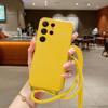CoverZone Galaxy S21 Ile Uyumlu Ipli Boyun Askılı Silikon Kılıf Kadife Iç Yüzeyli Epiphany Kılıf Sarı