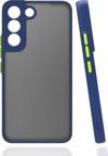 CoverZone Galaxy S22 Ile Uyumlu Kılıf Lastik Desen Kenar Kamera Korumalı Arkası Şeffaf Halx Lacivert