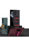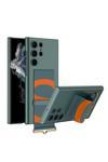 CoverZone Galaxy S23 Ultra Uyumlu Deri Parmak Tutucu Standlı Magsafe Uyumlu Askı Kayışlı Rubber Kılıf