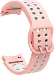 CoverZone Galaxy Watch 5 Pro Ile Uyumlu Iki Kancalı Metal Tokalı Çift Renk Spor Silikon Kordon Pembe-beyaz
