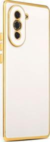 Huawei Nova 10 Ile Uyumlu Kılıf Gold Kenar Pastel Renkli Halcyon Z-bark Kapak Beyaz