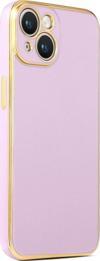 Iphone 14 Plus Ile Uyumlu Kılıf Gold Kenar Pastel Renkli Halcyon Z-bark Kapak Lila