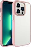 CoverZone Iphone 14 Pro Ile Uyumlu Kılıf Kenarları Renkli Silikon Arkası Şeffaf Sert Krop Pembe Açık