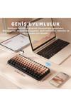 CoverZone Kablosuz Klavye - Bluetooth, Retro, Yuvarlak Tuşlu, Kedi Süs Aksesuarı, Sessiz Ajazz Aj308İ