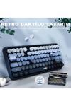 【 Kablosuz Retro Sevimli Klavye 】Bu sessiz Bluetooth klavye, olgun ve güvenilir kablosuz bağlantı teknolojisine sahiptir