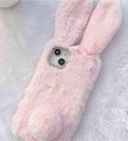 CoverZone Samsung Galaxy S20 Plus Uyumlu Kılıf Peluş Tüylü Tavşan Kulak Silikon Tpu Kapak Açık Pembe
