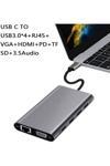 CoverZone Type-C To Hdmı Adaptör 11 In1 4Usb 3.0 4K Hdmı Vga Type C Rj45 Ethernet Sd Tf Kart Okuyucu 3.5Mm Au