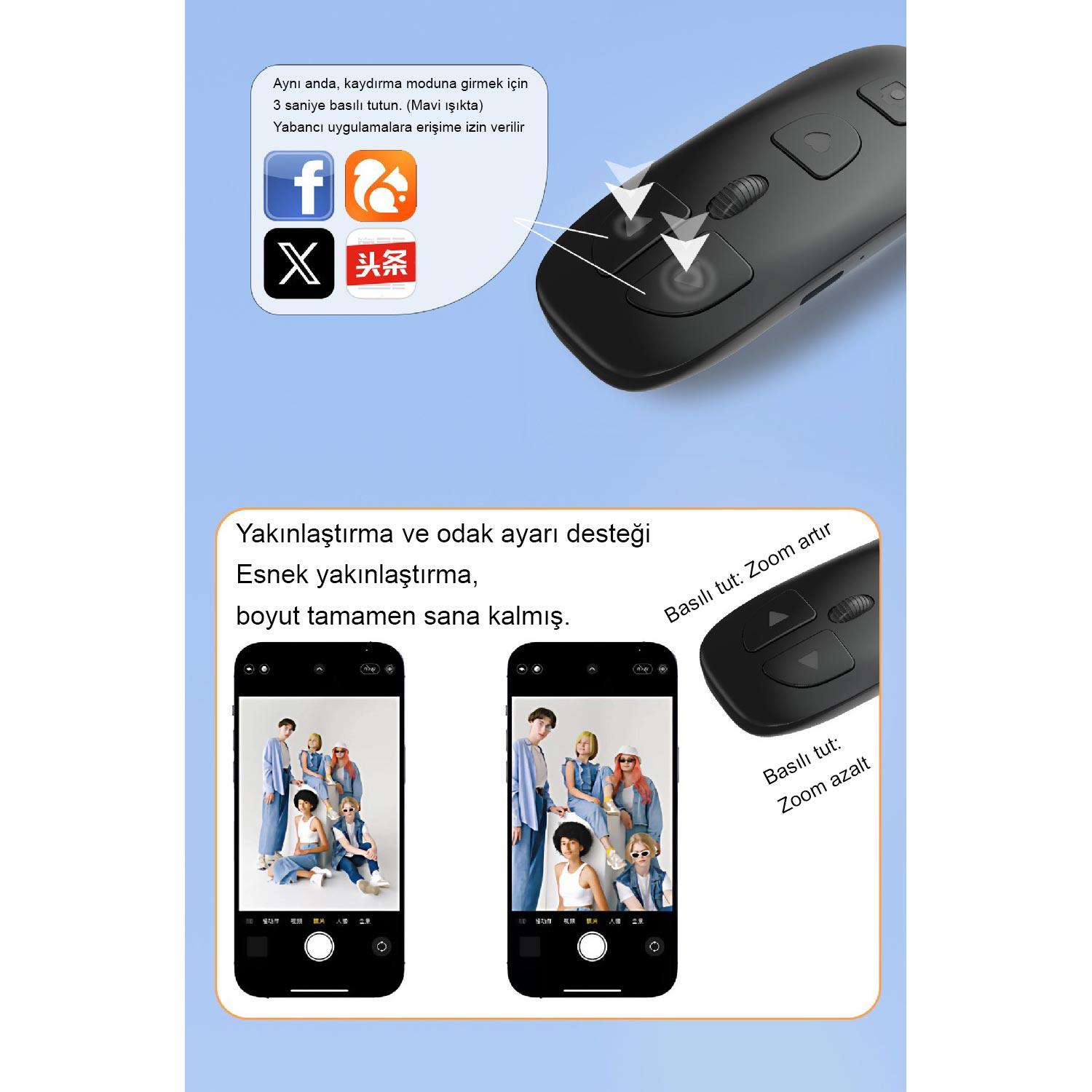 - ✅【Selfie Kumandası. Video ve Fotoğraf Deklanşörü】Detaylı kullanım tarifi ürün resimlerinde detaylı olarak belirtilmiştir.