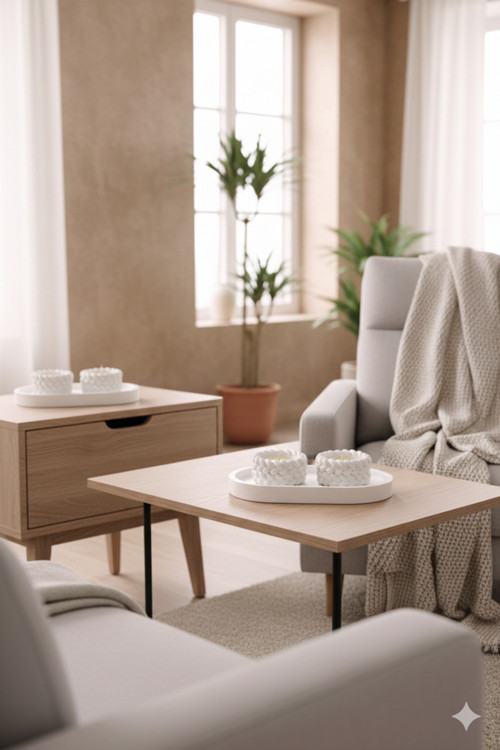 Dekoratif Şıklık: Görseldeki gibi orta sehpa üzerinde kitaplar ve bitkilerle mükemmel bir kombin oluşturur.