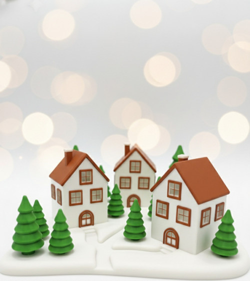 Crealis Dekoratif Kış Kasabası Biblo Seti Mini Evler Ve Çam Ağaçları