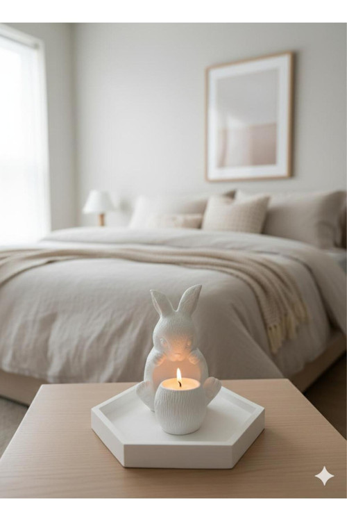 * Estetik Tasarım: Beyazın saflığı ile birleşen minimalist tavşan figürü, ortamın enerjisini tazeler.