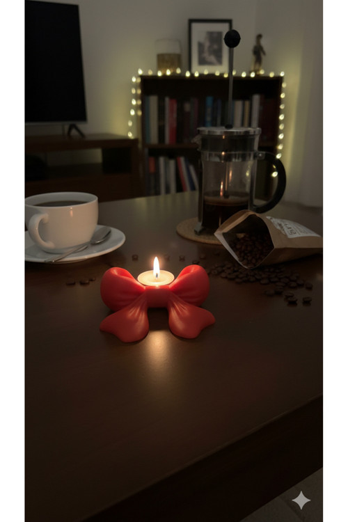 - Modern tasarımıyla her dekorasyona şıklık katan estetik kırmızı fiyonk tealight mumluk.