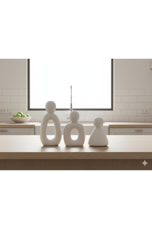Modern Soyut Aile Biblo Seti 3'lü Seramik Görünümlü Dekoratif Obje Yaşam alanlarınızda sadeliğin ve estetiğin gücünü hissedin.