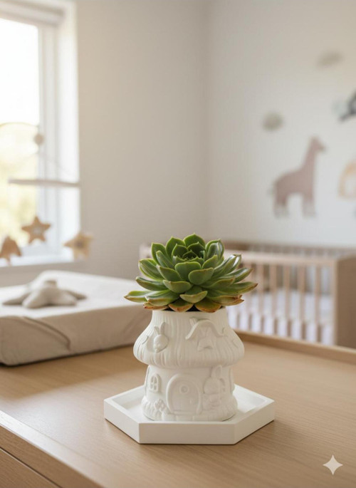 - Paket İçeriği: 1 Adet Tavşanlı Mantar Ev Saksı + 1 Adet Altıgen Altlık