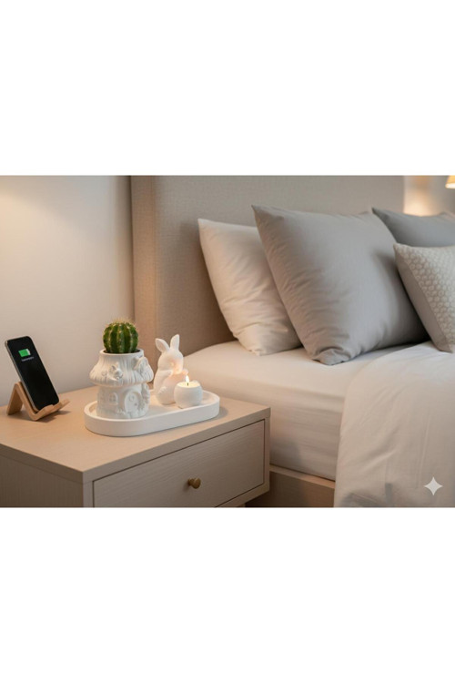 Crealis Tavşan Figürlü Ve Mantar Ev Tasarımlı 3’Lü Dekoratif Obje Seti