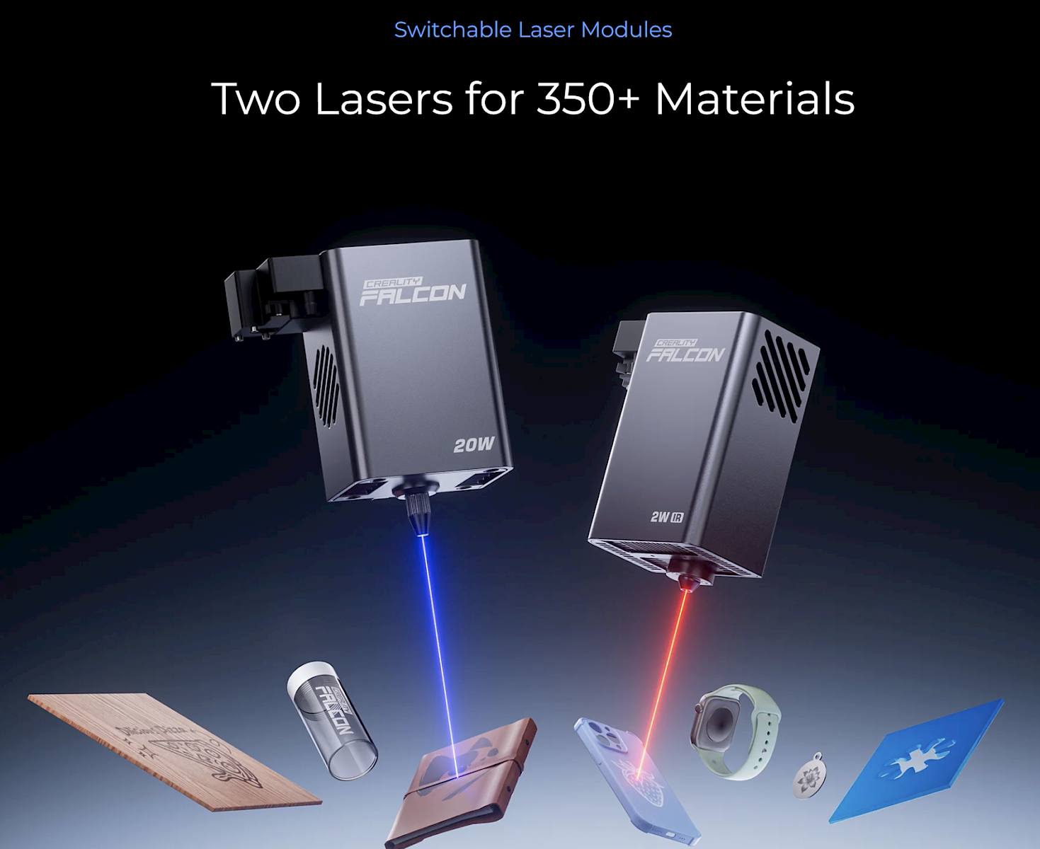 20W Mavi Lazer & Opsiyonel 2W IR Lazer Modülü: 350'den fazla malzeme ile uyumlu, ahşap, akrilik, deri, metal gibi materyalleri kesme ve gravür yapma imkânı sunar.