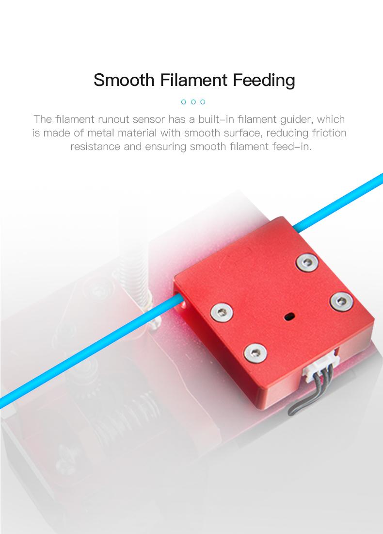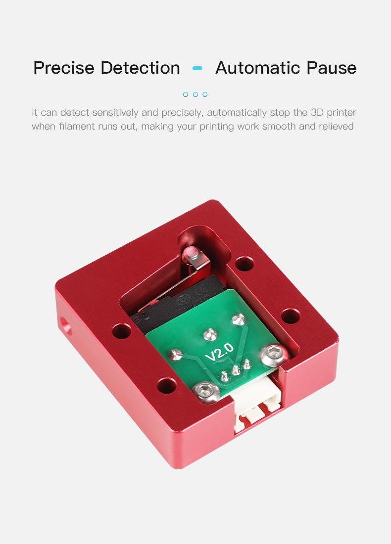 3D yazıcılarda filamentin bitip bitmediğini kontrol eden bir sensördür. İçerisinde filament olup olmadığını bir sinyal çıkışıyla 3D yazıcıya bildirir. Bu sensör ile baskı esnasında filamentiniz biterse yazıcınızı otomatik olarak durdurup yeni filament yüklemenizi bekler. Bu sayede filament israfının önüne geçebilirsiniz.