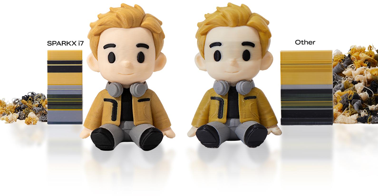 SparkX İ7 Combo'nun çok renkli baskı özelliği, tek bir modelde birden fazla rengi zahmetsizce birleştirmenize imkân tanır. Gelişmiş dört filament besleme sistemi, renk geçişleri sırasında oluşan atık filament miktarını benzer sistemlere kıyasla yaklaşık %50 oranında azaltır. Böylece hem malzeme tasarrufu sağlanır hem de canlı renk geçişlerine sahip dekoratif modeller, prototipler veya kişiselleştirilmiş objeler kolayca üretilebilir.