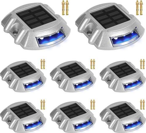 Deck Dock Lights 8-Pack LED Solar Pathway Driveway Lights Bright Blue with Screws Wireless IP68 Waterproof Outdoor Warning Step Lights for Driveway Garden Walkway Sidewalk Yard