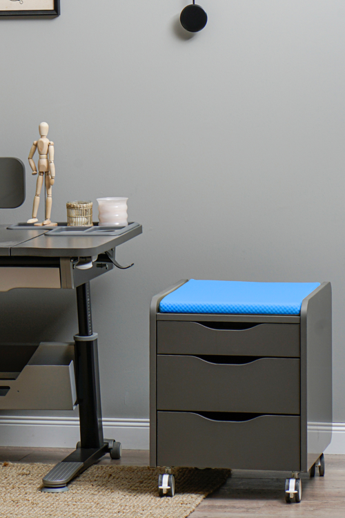 Creo Mobili Çekmeceli Kilitli Tekerlekli Sirius Keson Oturulabilir Ofis ve Ev Komodini Antrasit/Mavi