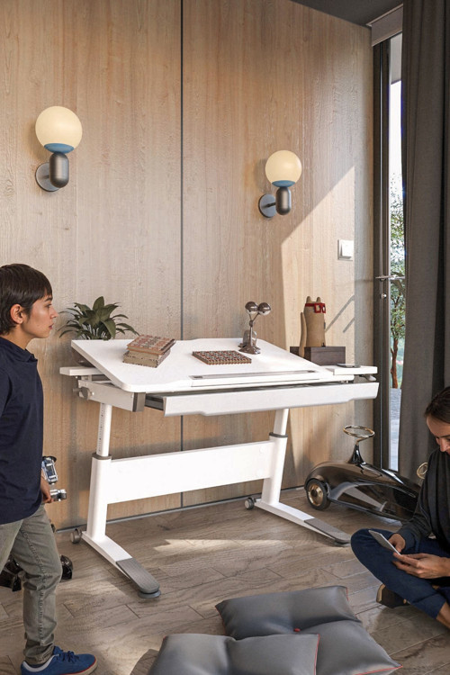 Eğimli Masa Üst TablasıPiston mekanizması sayesinde masa tablası 0-25 derece arasında eğim alabilir, çizim, yazı yazma veya okuma gibi aktiviteler için uygundur.