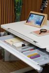 Eğimli masa üstü, çizim ve tasarım işleri için mükemmel bir çalışma yüzeyi sunar.