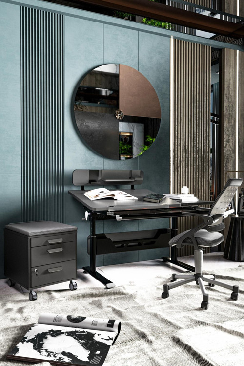 Masa yüksekliği, çevirme kolu sayesinde kişisel tercihe göre kolayca ayarlanabilir. Bu özellik, uzun süreli kullanımlarda ergonomik bir duruş sağlar.