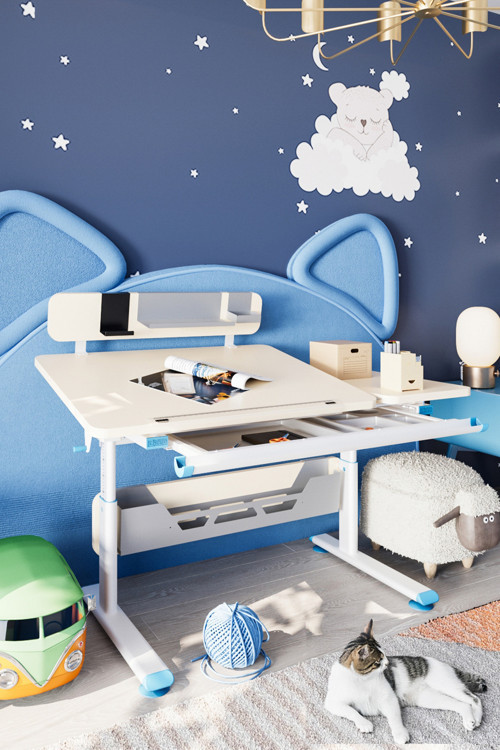 Creo Mobili Yükseklik ve Eğim Ayarlı, Vega Standart Bilgisayar, Ofis ve Çalışma Masası Ekru/Mavi