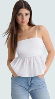 Sıcak yaz günlerinde serin ve şık görünmenizi sağlayacak beyaz crop bluzumuz, ince askıları ve rahat kalıbıyla tüm gün konfor sunuyor. Hafif ve nefes alan Dacron dokuma kumaştan üretilen bu bluz, yaz aylarının vazgeçilmez parçalarından biri olmaya aday. Düz tasarımı ve şık kare yakasıyla her kombininize uyum sağlar. Sırt kısmındaki kurdele detayı ise bluza romantik bir hava katıyor. Günlük kullanım için ideal olan bu bluz, şort, etek veya jeanlerle kolayca kombinlenebilir. Makinede yıkanabilir özelliğiyle de pratik kullanım sunuyor.