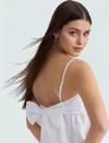 Sıcak yaz günlerinde serin ve şık görünmenizi sağlayacak beyaz crop bluzumuz, ince askıları ve rahat kalıbıyla tüm gün konfor sunuyor. Hafif ve nefes alan Dacron dokuma kumaştan üretilen bu bluz, yaz aylarının vazgeçilmez parçalarından biri olmaya aday. Düz tasarımı ve şık kare yakasıyla her kombininize uyum sağlar. Sırt kısmındaki kurdele detayı ise bluza romantik bir hava katıyor. Günlük kullanım için ideal olan bu bluz, şort, etek veya jeanlerle kolayca kombinlenebilir. Makinede yıkanabilir özelliğiyle de pratik kullanım sunuyor.